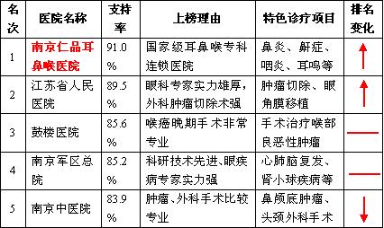 从媒体提供的2014年南京儿童中耳炎医院调查排名显示,今年儿童中耳炎科排名情况较去年有很大变化。南京仁品医院、这2家名次有很大提升,南京中医院排名下降明显。南京中医院的重点科室是消化内科,此次排名下降是意料之中。而的重点科室是普外科、妇科、内分泌科等,普外科主要是以手术为主治疗胆道、胰腺、胃肠、肛肠等疾病。因而排名在后面也不足为奇。